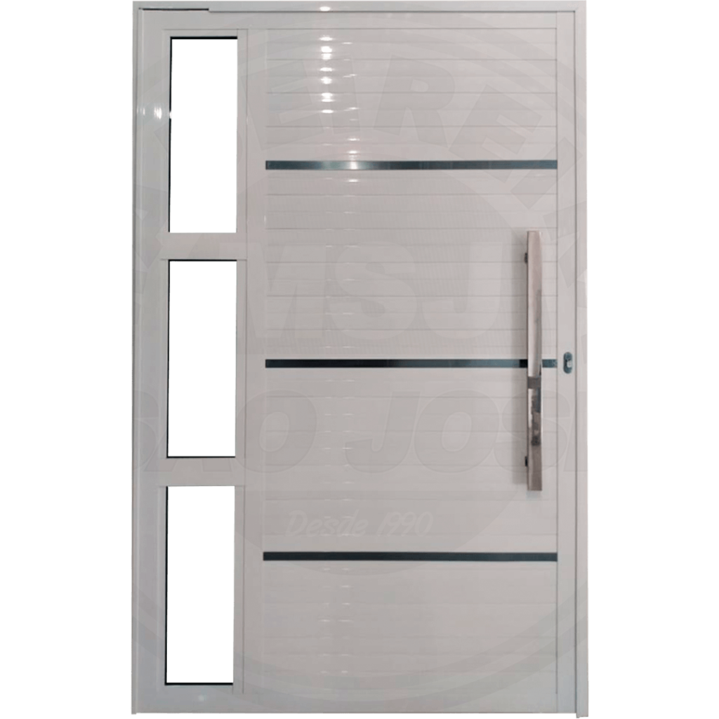 Porta De Aluminio Com 3 Visores e Frisos De Aço